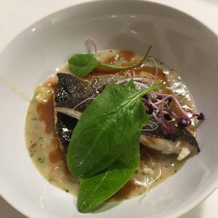 Meeresche auf Perlgraupenrisotto und geschmorten Radieschen
