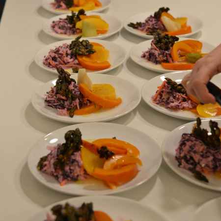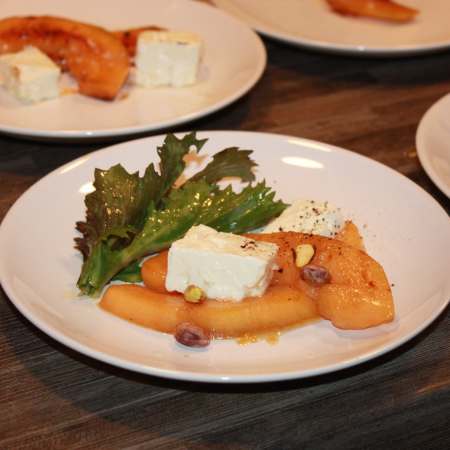 „Pickled“ Pumkin mit geröstetem Cashews, Birnen-Pastinaken Cole-Slaw und gerösteten Bierkürbiskernen