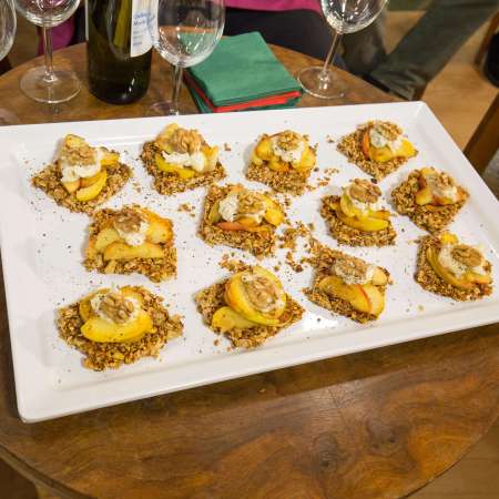 Selbstgemachter Müsliriegel mit Einkorn und Walnuss, Apfel und Gorgonzola