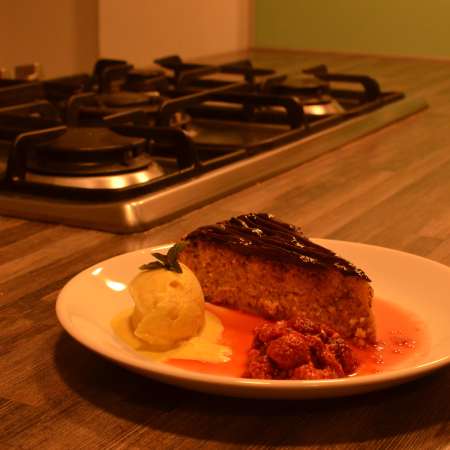 Orangen-Schokotarte mit Trockenfruchtkompott